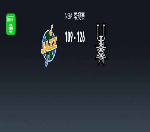 第四节爵士埃斯-贝利拿下9分,马刺福克斯拿下12分,最终爵士109-126不敌马刺