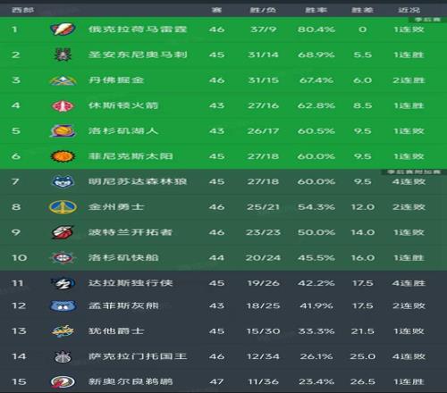 北京时间1月24日,今日的NBA常规赛结束了所有比赛,我们看看西部最新积分榜变动!